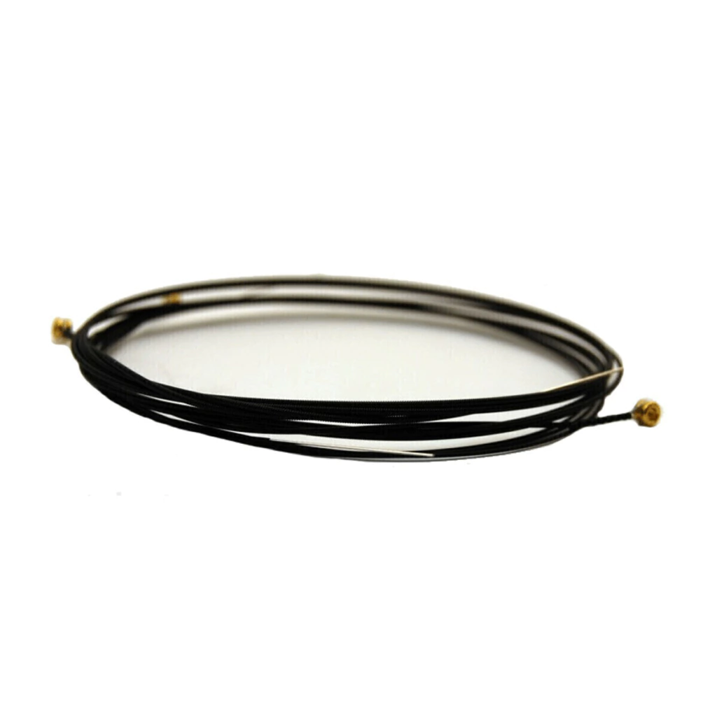 Todos os conjuntos de baixo padrão têm escala LONGA. As cordas 1ª (G), 2ª (Ré) e 3ª (A) têm 96 cm da ponta esférica à seda/cone. A 4ª corda (E) tem 91 cm da ponta esférica à seda/cone. Apenas a parte de seda da corda deve envolver o pino de afinação. Apenas a seda deve ser cortada, caso contrário, a corda se desfiará.